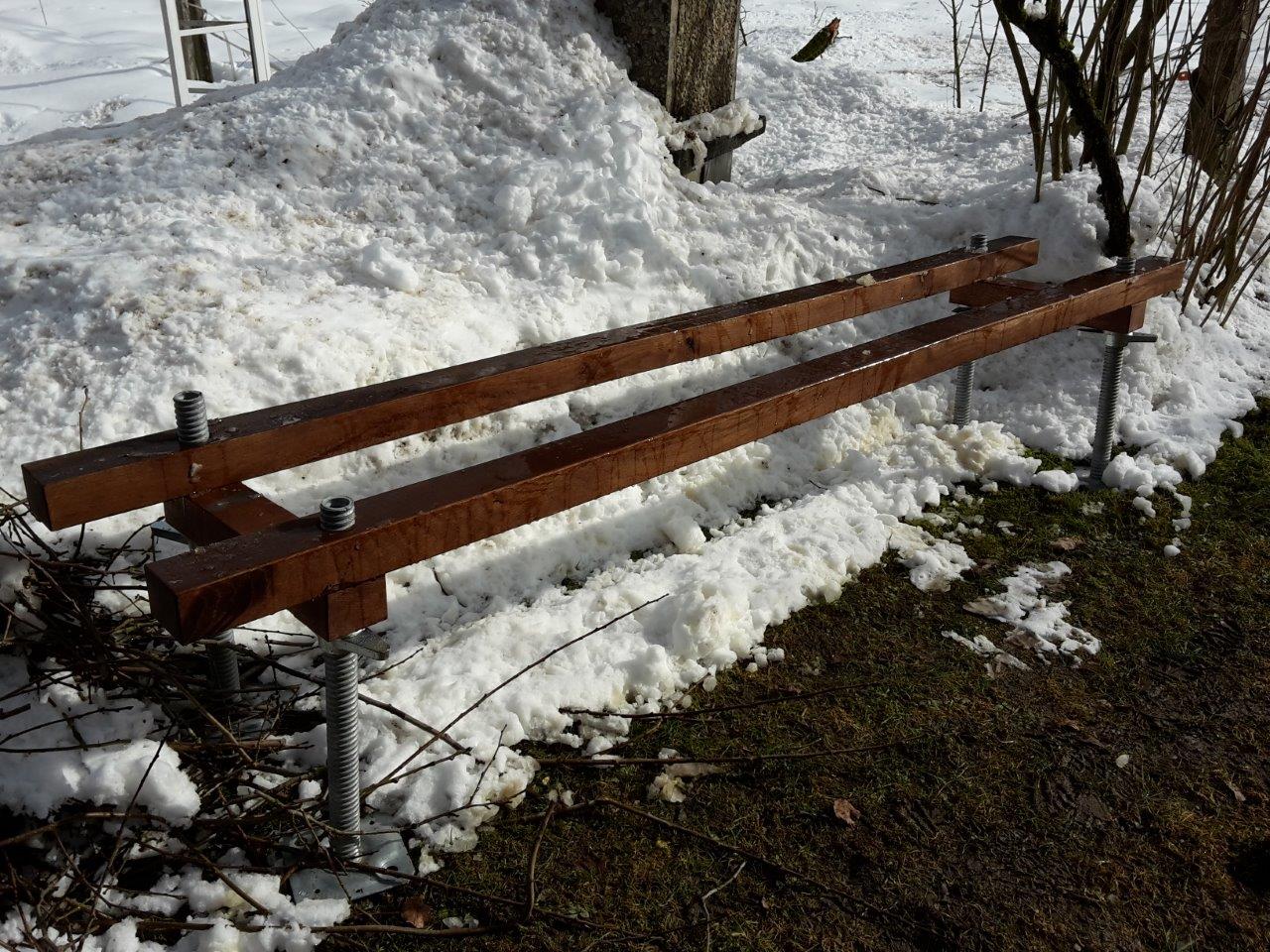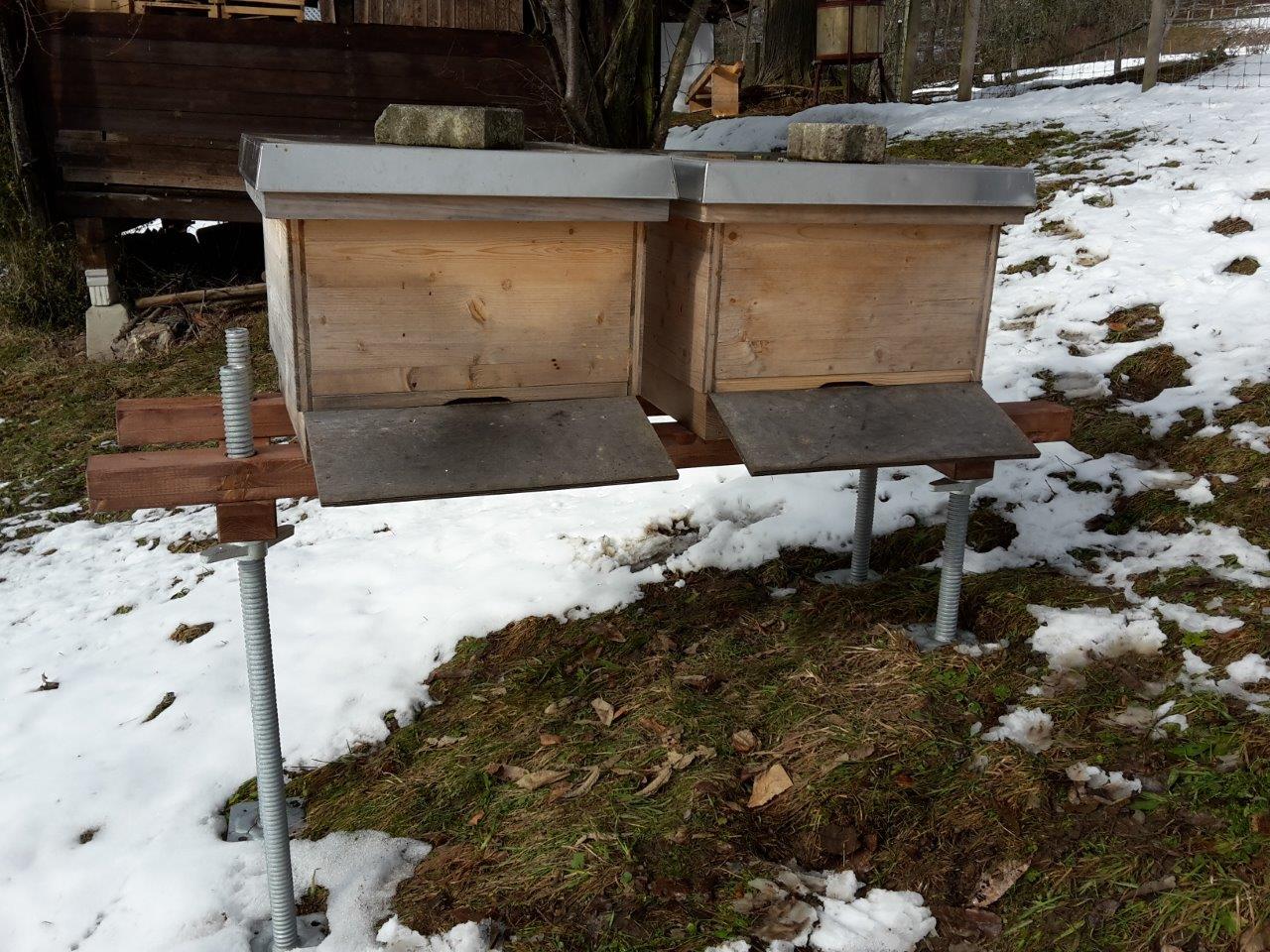 Passend für zwei Beuten. Massive Ausführung, bestehend aus 4 in der Höhe verstellbaren Gerüstfüßen sowie Einsteckhölzern aus Gerüstfüßen sowie Einsteckhölzern aus Massivholz Außenmaß 165 x 42 cm, Höhe 10 bis 50 cm verstellbar Preis 185.- CHF